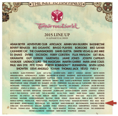 即將於美國時間8月25到27日於亞特蘭大舉行的TomorrowWorld,最近釋出表演名單,俠客DJ的名稱DJ Diesel就寫在名單上面,也讓外界注目與好奇。